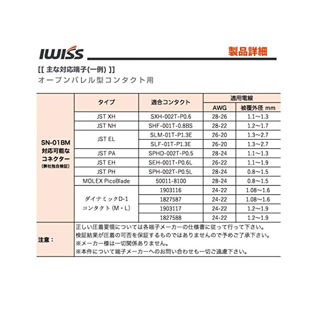 適合:JST(日圧) D-SUB、XH2.54、PA、PH2.0、KF2510等の圧着に