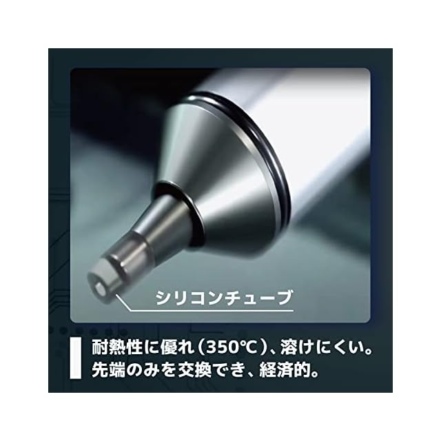 先端のハンダカスが排出される目詰まり防止機能付き。