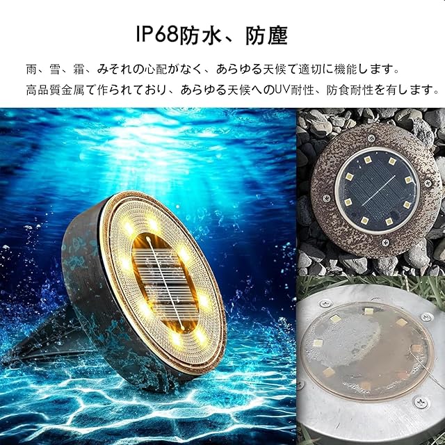 XPJIAJUN ソーラーライト 屋外照明 IP68防水 LED 8 個セット 埋め込み式 ガーデンライト 防災 災害 作業用 アウトドア 電球色