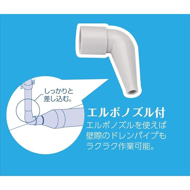 セット内容:ドレンホース用ストレートノズル(内径φ14、φ16mm対応)、ドレンパイプ用エルボノズル(内径φ13~φ25mm対応)
