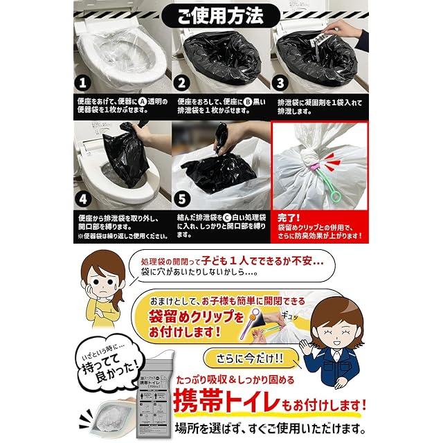 【大震災復興従事者が全力で作り上げた】 簡易トイレ 非常用トイレ 防災グッズ 災害用トイレ (+車用トイレ&袋留クリップ おまけ付き) 災害用 ポータブルトイレ 防災 トイレ 災害 車 渋滞 簡易トイレ(100回分) | つむぎ屋