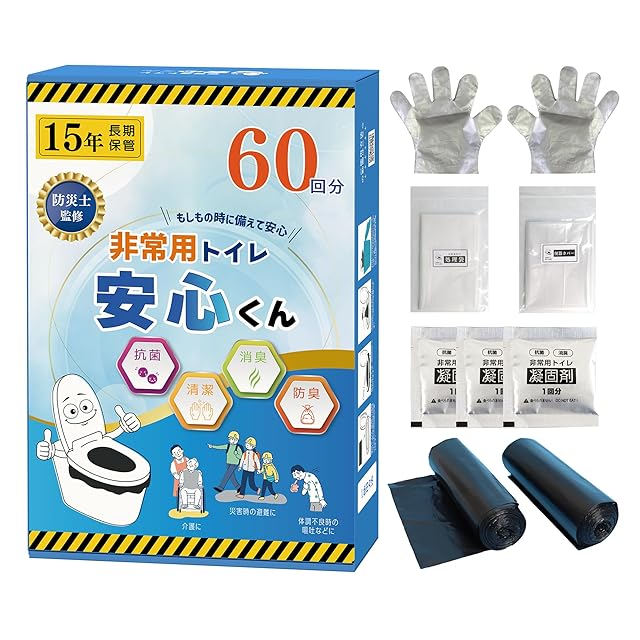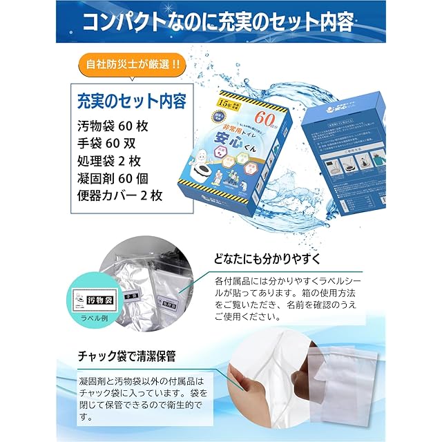 【手袋付き】災害時は水の供給も滞り手洗いもままならない事も……。手袋付きなので衛生的に便を処理できます。