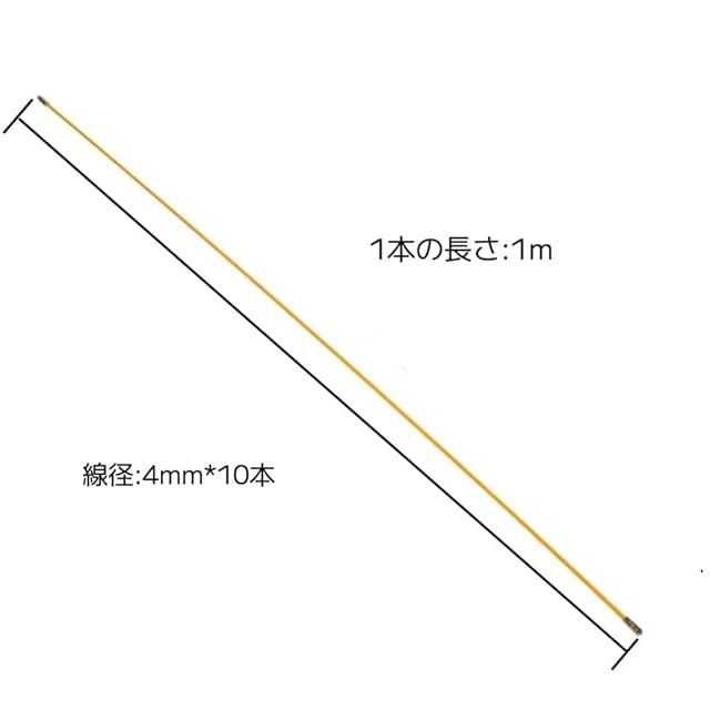 【商品仕様】材質:グラスファイバー、真鍮 長さ:1m*10本 ロッド径:4mm 収納ケース付き