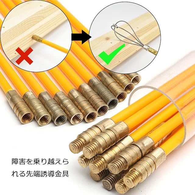 【狭い空間の配線作業に最適】ガラスファイバー製の通線ロッド。水平方向への保持力がかなりあります。壁内や断熱材の中でもロッドがぐらつかず、スムーズに配線可能。