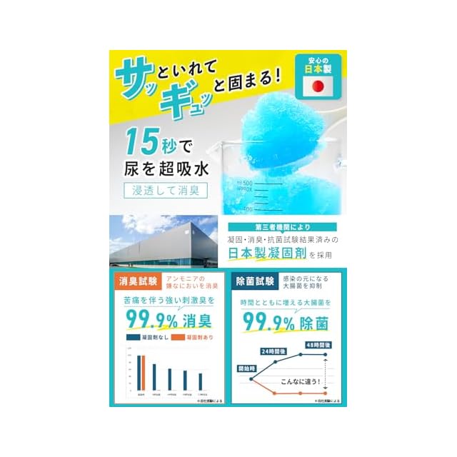 【しっかり固まる日本製凝固剤】✅凝固剤は固まる量と持続時間そして防臭効果が重要です。成人男性の1回の尿(200~300ml)でもしっかりと固まり、防臭効果に関しては専門機関に依頼し、しっかりと効果があることを確認いたしました!