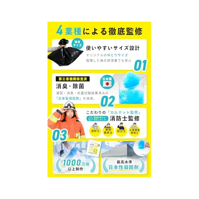 【消防士・防災士・災害備蓄管理士が開発】✅消防士・防災士・災害備蓄管理士のトリプル監修。防災に関する知識を活かし震災時でもしっかり活用できるように開発した全て日本製かつ、使い易さを追求した非常用トイレです。