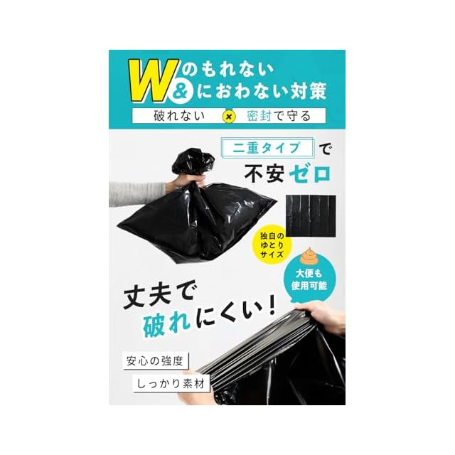【袋にもこだわりました】✅安心安全の日本製なのはもちろん、排泄物が見えないように黒い袋を採用!さらに大きな袋では余計な部分がはみ出てしまい使いづらいことから使いやすい独自サイズに調整しました。匂い対策も意識し2重の袋でダブル消臭!