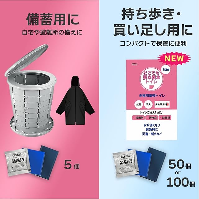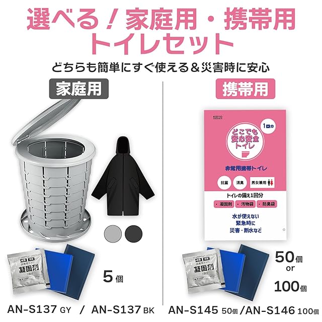 KEIYO【防災士推奨】非常用簡易トイレ100回セット 凝固剤/汚物袋/防臭袋のセットがポケットサイズの一袋に! 防災グッズ 災害用 非常用 エチケット袋にも サポートが繋がる安心の日本メーカー AN-S146【公式ショップ】 | つむぎ屋