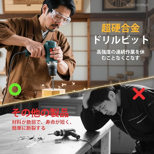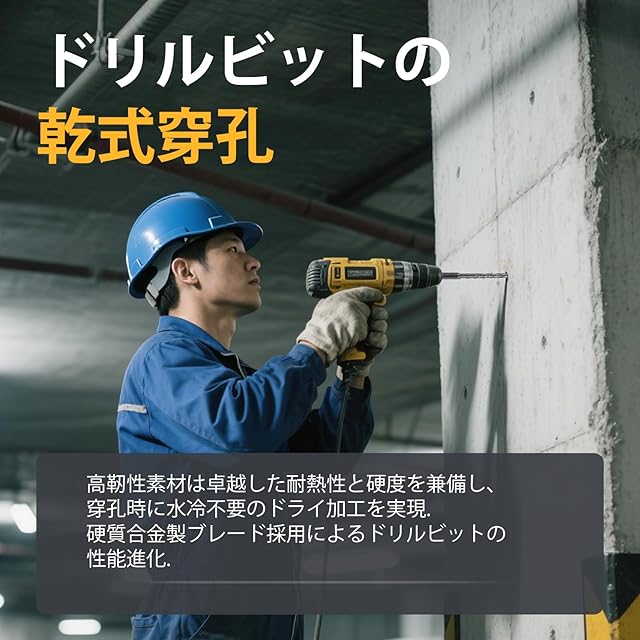 【3mm-6mm5サイズセットで実用的】 建築現場で頻繁に使用される標準サイズを網羅。配管工事から電気配線用穴あけまで対応。 ※ステンレス鋼加工時は切削油/水冷必須 ※焼入れ鋼・高速度鋼には非対応