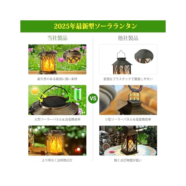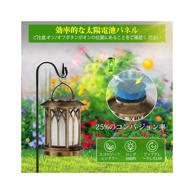 【ギフトに最適&100%満足】屋外ソーラーライトの炎の揺らぎ効果は、家の周りを生き生きとさせ、恋人や母の日、祝い、ガーデニングなどの贈り物にも最適です。本ソーラーランタンには、購入日から12ヶ月以内に製品の性能、品質、色にご満足いただけない場合には、全力で良いアフターサービスを提供する100%満足が付いています。
