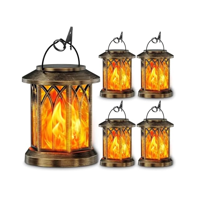 Letmy ソーラーランタン ソーラーライト 屋外 防水 ガーデンライト 屋外 防水IP65 火炎 イルミネーション 飾り LED 太陽光パネル充電 夜明け 自動オン/オフ パティオ、玄関、パーティー、庭、駐車場などに適用 ヴィンテージ 4個セット | つむぎ屋