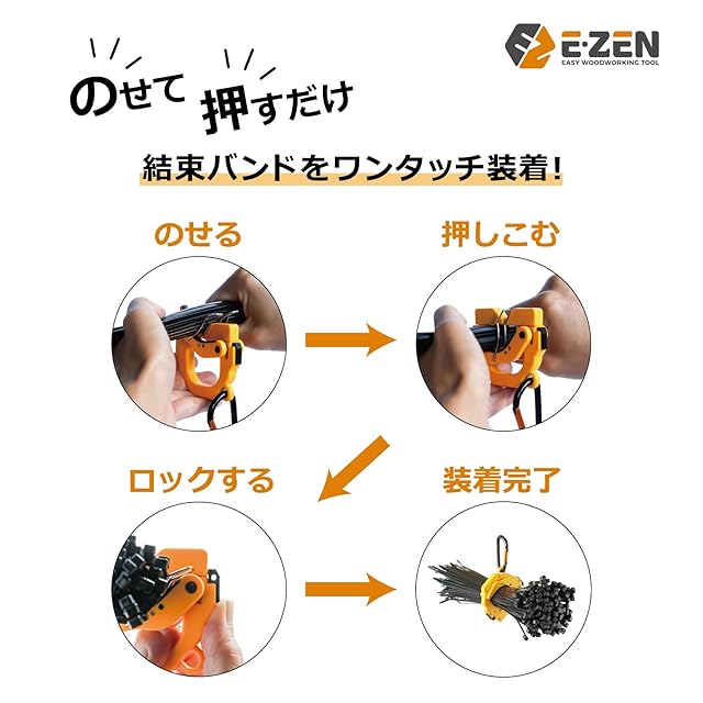 ・のせて押すだけでケーブルタイ(結束バンド)をワンタッチ装着。