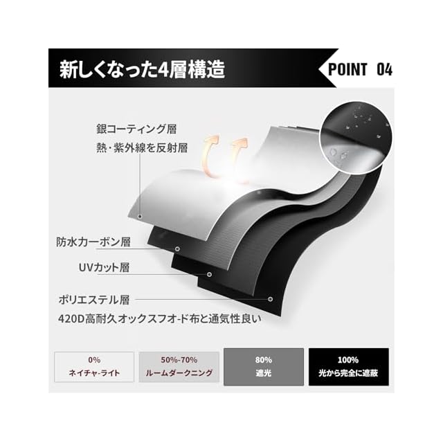 【生地について】420Dオックスフォード カーボンポリエステル 遮熱シルバーコーティング加工済柔らかくツルッとした手触りでマットな質感です。1級遮光、遮熱、保温、防水の高機能の生地で、生地の表と裏が違う色になっているので、仕切りにも使いやすいです。