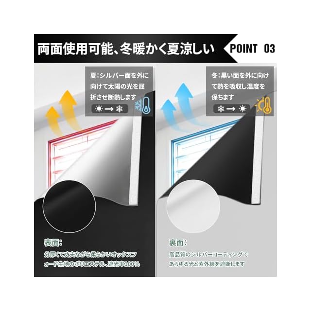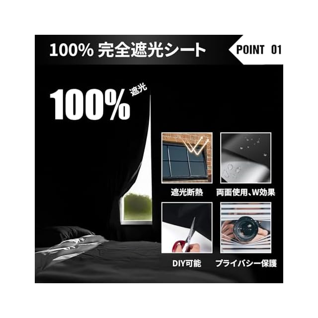 【100%完全遮光・真っ黒・目隠し効果】ISKALTの窓遮光シート 420Dオックスフォード カーボンポリエステル 遮熱シルバーコーティング加工済、遮光率100%。赤ちゃん、昼夜逆転の方、光に敏感な方の部屋に最適な窓ガラス目隠しシートです。目隠し効果も抜群で、窓に貼るだけでお宅の大切なプライバシーをきちんと守ってくれます。無カーテン化で部屋がすっきりして広くになります。