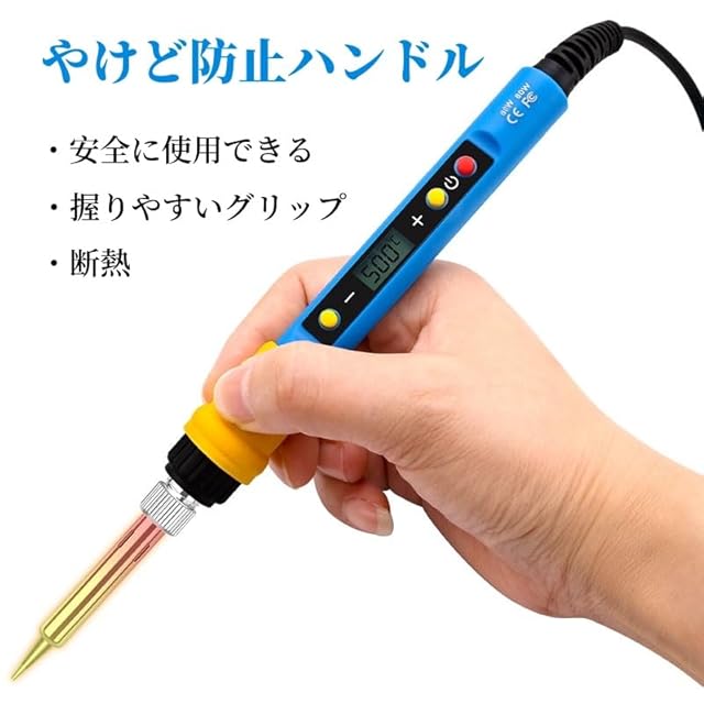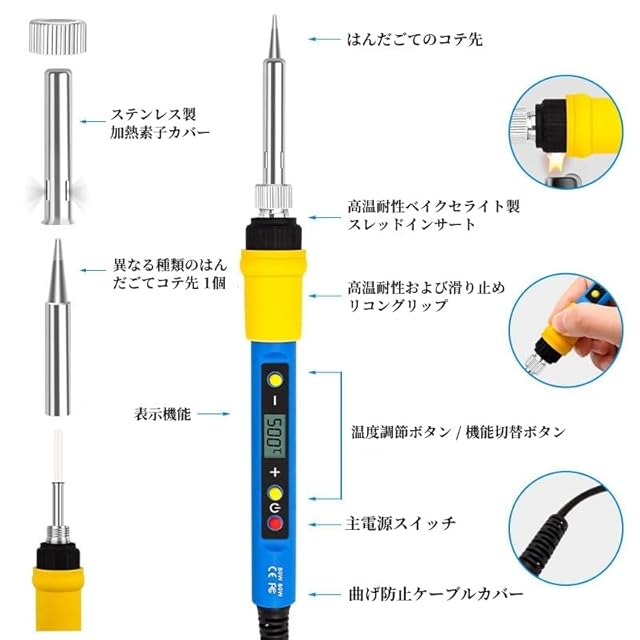 【80W簡易セット】デジタル表示 はんだごてセット 電源ボタン有り 180℃~500℃ はんだごて 半田ごて 液晶表示 デジタル式 温度調節 (80W-コード式)