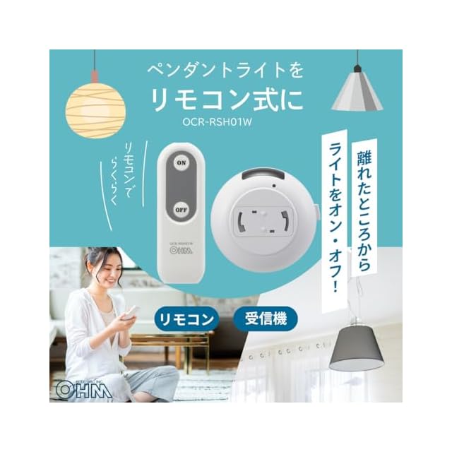 オーム(OHM) ペンダントライト用リモコン 後付け リモコンスイッチ 照明用リモコン 吊り下げ照明 工事不要 簡単 手軽 ペンダントライトをリモコンでオンオフ オーム電機 OCR-RSH01W 07-8779 | つむぎ屋