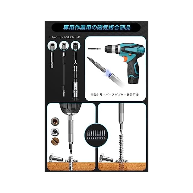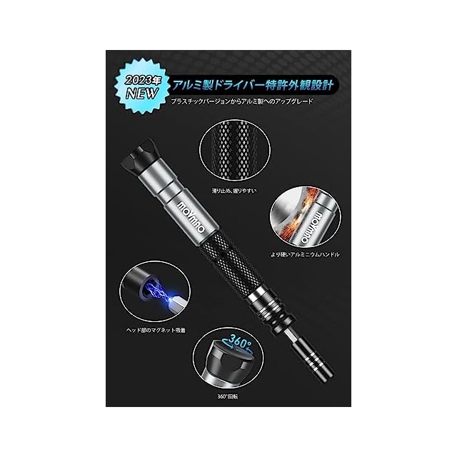 ❤【アルミ製ハンドル&高品質S2&CR-Vビット素材】2023年MOVMAOドライバーハンドルは人間工学に基づいた唯一無二の外観特許設計で、高品質かつ堅牢の高いアルミニウムを採用して、より大きく、より丈夫で持ちやすくなっています。*S2とCR-Vの組み合わせ:強靭さと硬さを兼ね備えたS2素材とCR-V素材を組み合わせ、ビットは衝撃や振動に強く、硬度、靭性、密度、耐久性に優れています。錆びないだけでなく、傷つきにくく、剥がれにくいのも特徴です。何万回と回転させても壊れないです。
