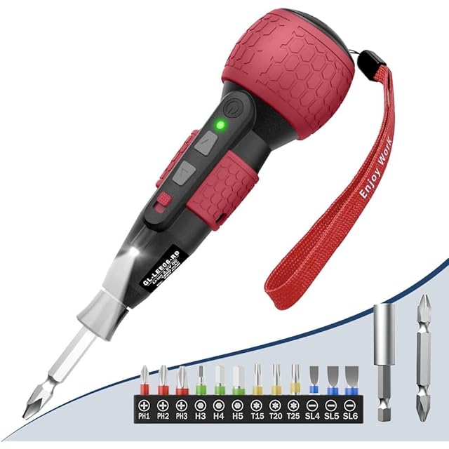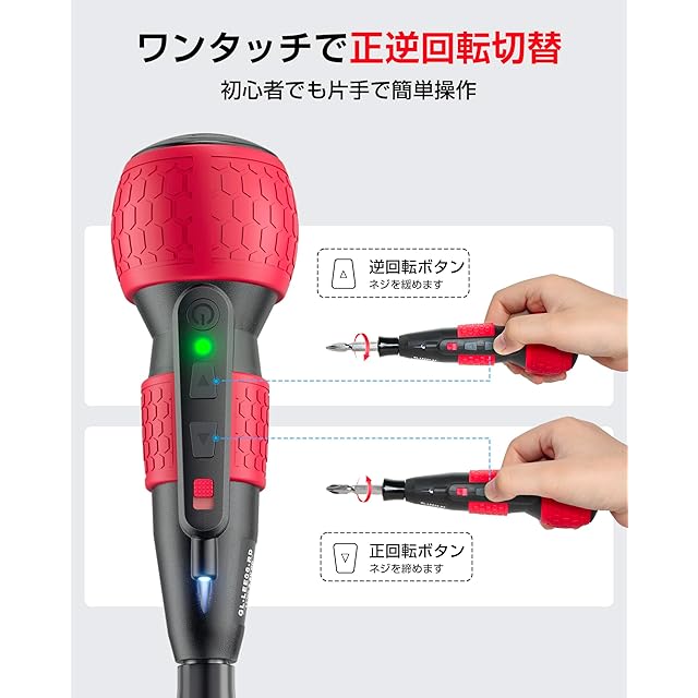 Yacooda 電動ドライバー 小型 強力 トルク3段階調整 【高い同心度・ビット振れ軽減】 電動4N.m 手動12N.m USB-C充電式 高輝度LEDライト 軽量 DIY 操作簡単 女性/初心者対応 電動ドリル ペン型 父の日 誕生日プレゼント レッド | つむぎ屋