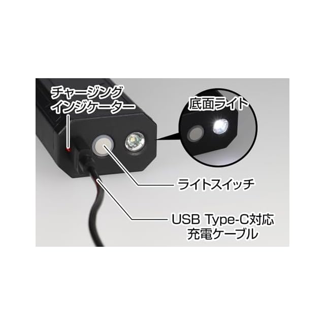 明るさ:底面ライト/120ルーメン、実用点灯:底面ライト/1時間、最大照射距離:約56m (底面ライト)