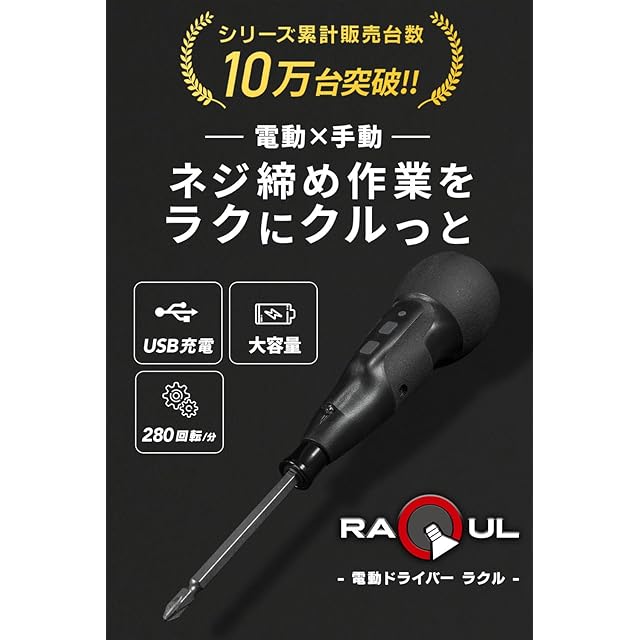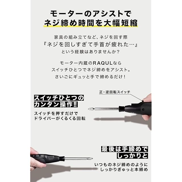 ✅【電動のスピード×手締めのパワー】で、ネジ締め作業の効率大幅UP!!次世代型電動ドライバー!毎分280回転のモーターで早締め!本締めは手動でしっかりと!(最大トルク10N・m)