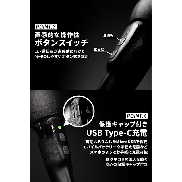 ✅【USB充電】充電方式はUSB Tye-Cを採用!モバイルバッテリーやカーチャージャーから、スマホと同じ感覚で充電可能です