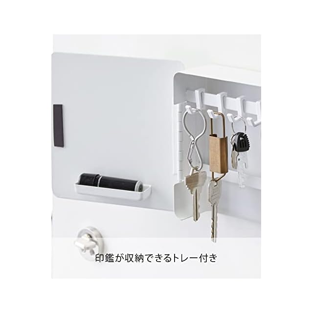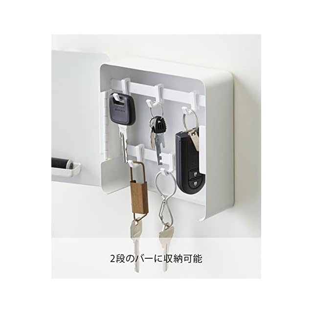 商品名:山崎実業(Yamazaki) マグネット キーフック 2段 ホワイト 約W15.8XD5.5XH15.8cm タワー 玄関 エントランス 鍵 印鑑 収納 鍵いれ 4799