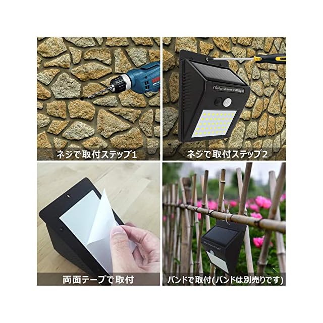 取り付けが簡単で:18650バッテリーが内蔵されており、太陽エネルギー充電で、家庭用の電気を消費せず、安全で省エネです。楽に取り付けられます。車庫、地下室、廊下、庭、入り口、貯蔵室などの室内外の場所に広く応用されています。