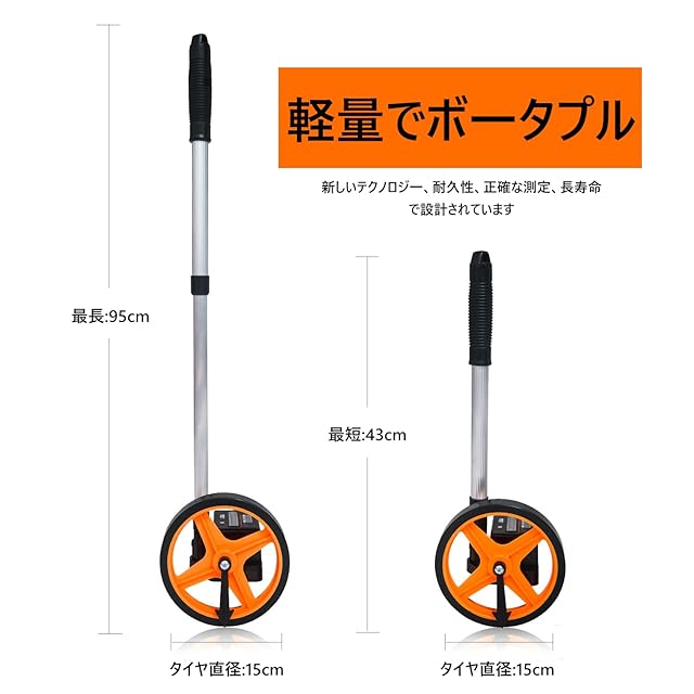 Zozen ウォーキングメジャー 距離測定器 ロードメジャー 6インチ 伸縮する式10cm~9999m 測定 ホイール 測定 ホイール 始点矢 マーク付きメートル法オレンジ色 体育器具 距離 計測 学校 住宅の測量 | つむぎ屋