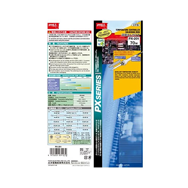 商品名:太洋電機産業(goot) 温調はんだこて PX-201 70Wハイパワー 鉛フリーはんだ対応 日本製