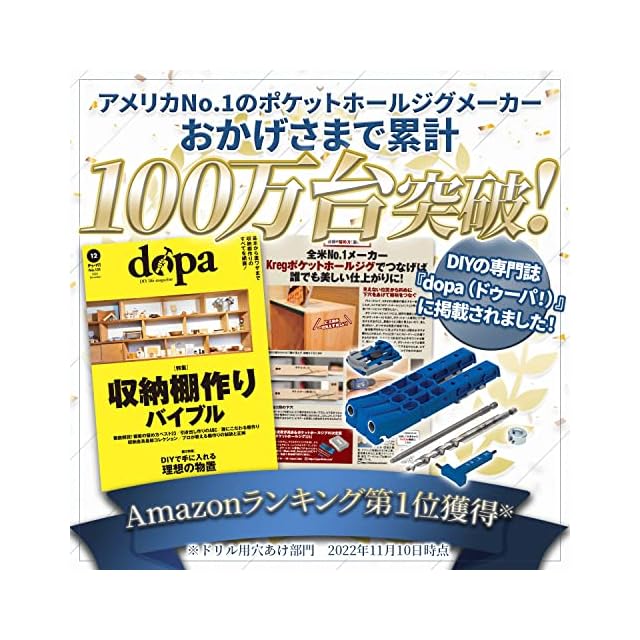 ポケットホールジョイント加工をするための治具セットです。初心者の方から簡単に加工することが出来ます。DIYで棚や机をダボ穴加工なしで、外から見えにくくツーバイフォーやワンバイフォーなどの木材をジョイントすることが出来ます。