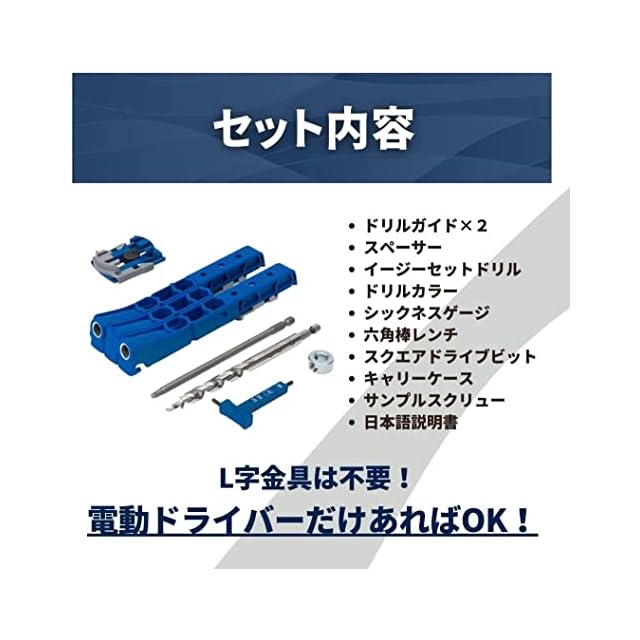 持ち運びに便利なケースの他、ポケットホールジョイント専用のポケットホールスクリューが付属しています。また、日本語の説明書が付属しています。