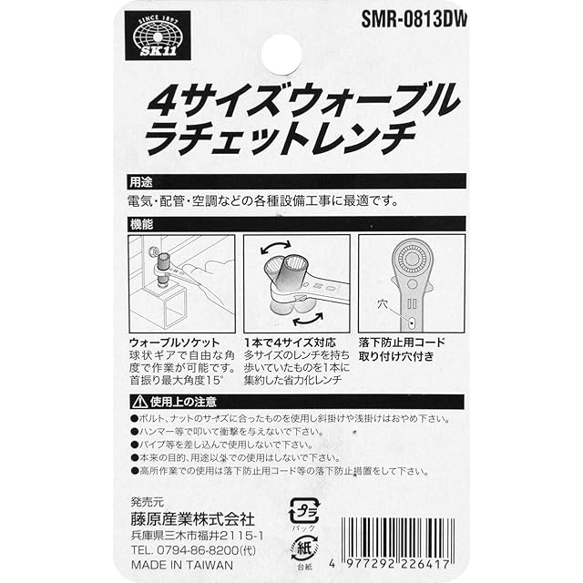 商品名:SK11(エスケー11) 4サイズ ウォーブル ラチェットレンチ (最大首振り15度) SMR-0813DW