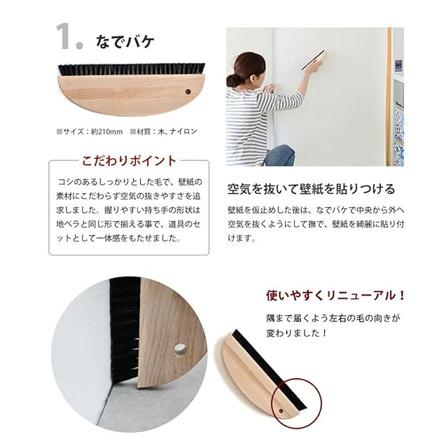 商品名:壁紙屋本舗 壁紙施工道具7点セット 地ベラ 刷毛 壁紙 張り替え 壁紙 貼る道具 セット