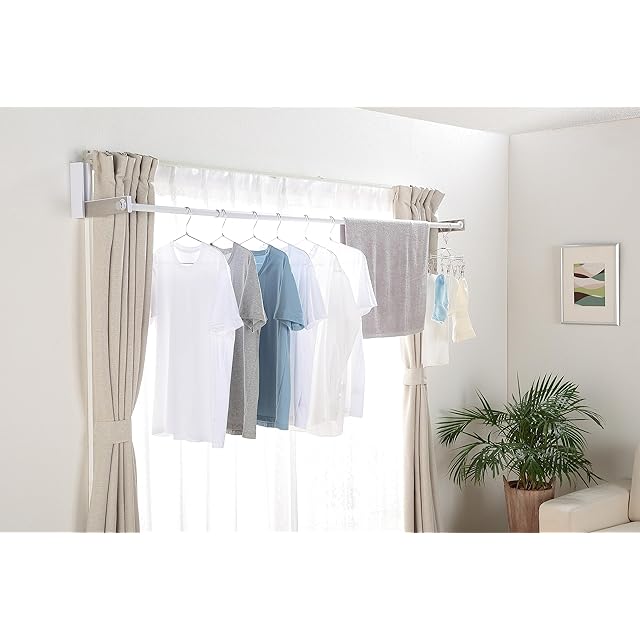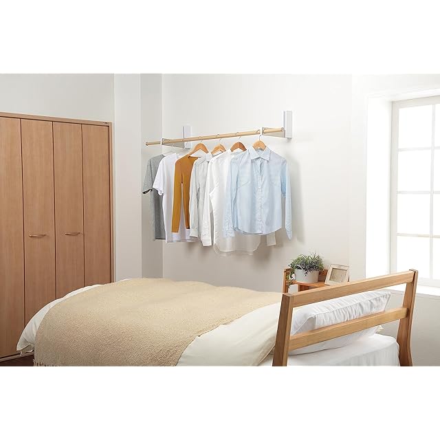 ※9.5mm以上の厚みの石膏ボードならV型のクギが裏側に突き抜けませんので下地(木部)があっても取り付け可能になりました! ※ダブルVクギをを打ち込む際に説明図の様に斜めに打ち込むように頑張ってください! 仕上がりもきれいに便利におしゃれになりました。 更に取り付け簡単でこれならDIY初心者の方でも大丈夫だと思います。 ※物干し竿は別売です。