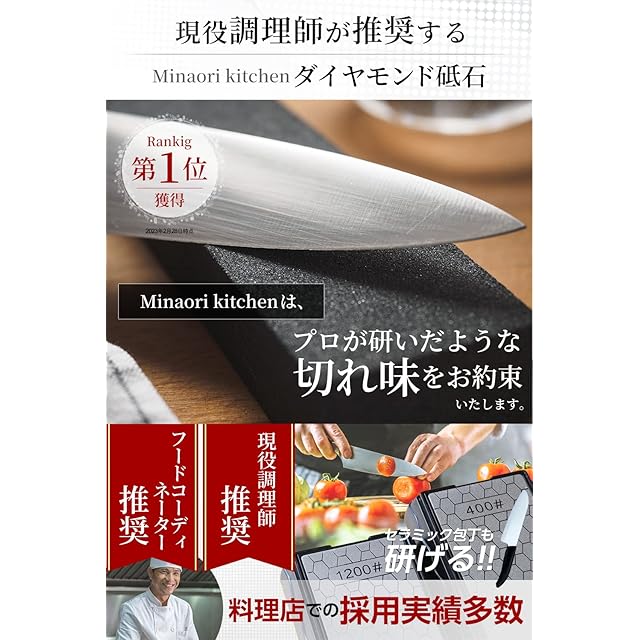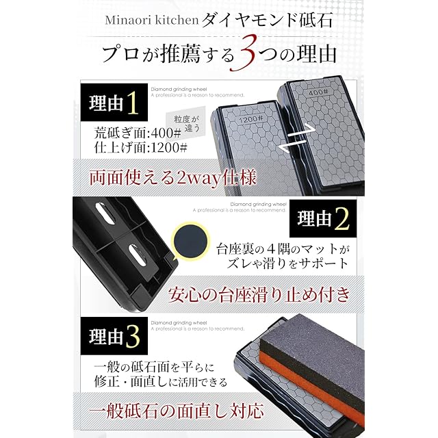 商品名:Minaori kitchen 両面ダイヤモンド砥石 包丁研ぎ クリップ付き [調理師認定] 砥石 包丁 シャープナー #400#1200