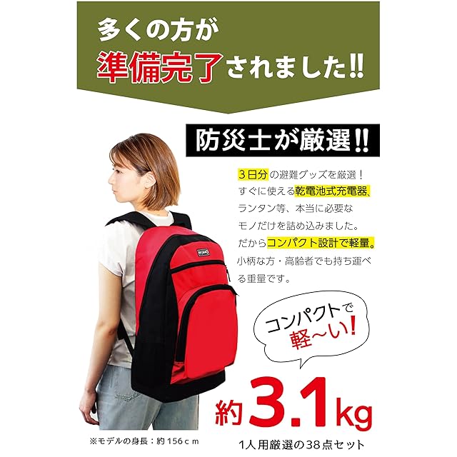 防災グッズ セット リュック 1人用 非常用リュック 緊急避難 【日本防災ブランド】 軽量 私物追加 大容量リュック 非常用 簡易 トイレ グッズ追加可能 ((A)赤リュック 防災セット1人用(食品なし)) | つむぎ屋