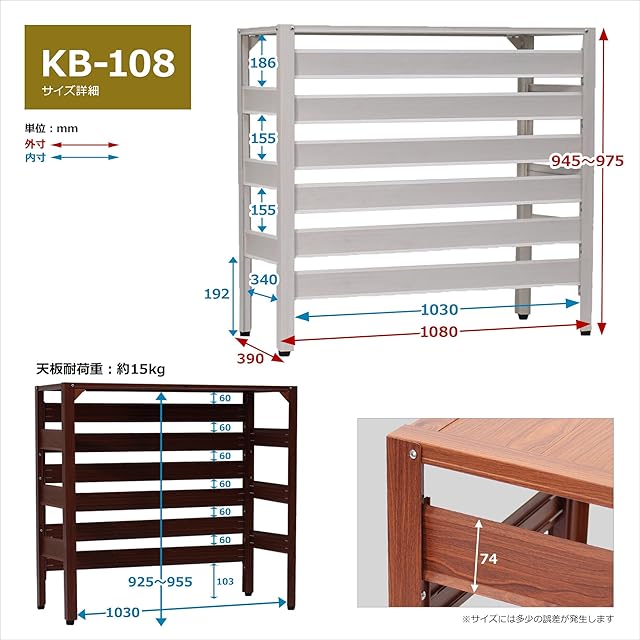 本体サイズ外寸:幅1080×奥行390×高さ945~980mm
