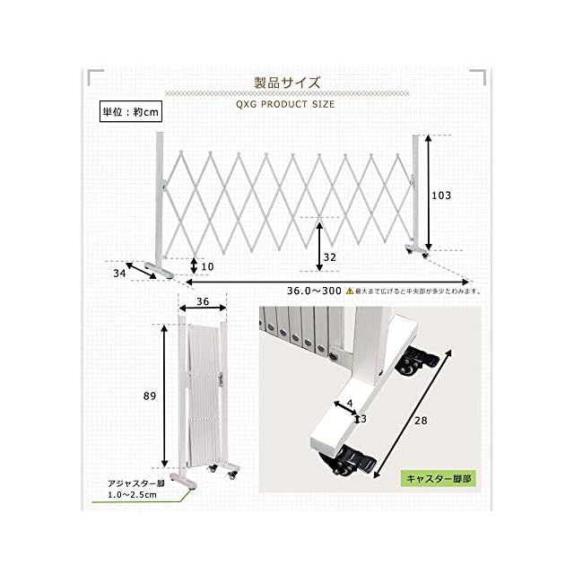材質:フェンス=アルミニウム、脚部=アルミニウム、キャスター/アジャスター=スチール、ゴム