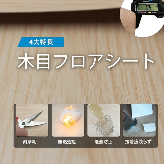 ロール形式: ロール状になっているため、必要な長さに簡単にカットできます。一度に広げて設置できるので、無駄なく効率的に作業が進みます。フロアマットやフローリングとしても最適です
