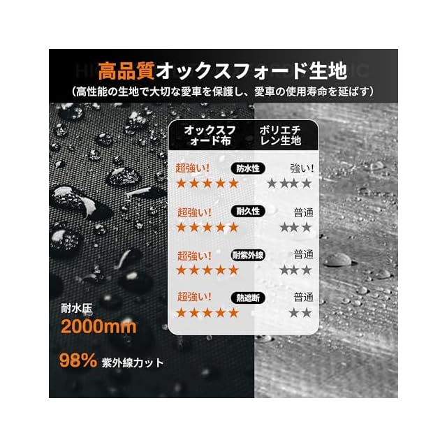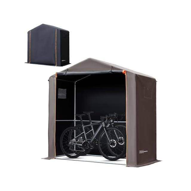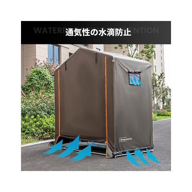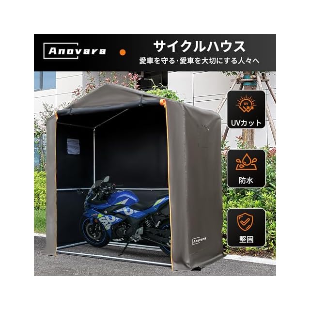 [防水防塵日よけ]:カバーには高密度のオックスフォード生地を使用し、内部にはPUコーティングが施されており、耐水圧は最大2,000mm、優れたUV防止効果を備えています。カバーの縫い目にはすべてシーリング加工が施されており、日光や雨水の浸入を減少させます。カバーの底部に延長されたスカートは、雨水や小動物の侵入を防ぎます。Anovaraのサイクルハウス、愛車を風雨、日光、埃から保護し、使用寿命を延ばします。