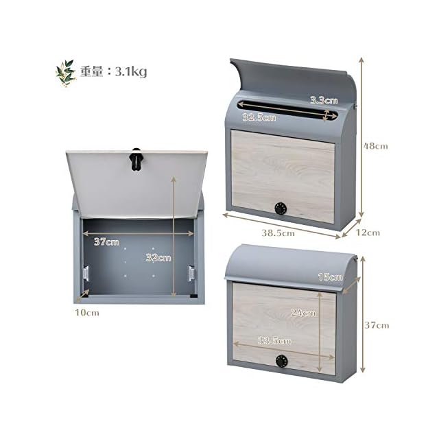 ガーデンマスター(Gardenmaster) メールボックス ポスト ダイヤルロック式 幅38×奥行12×高さ37cm (郵便ポスト/宅配ボックス) 壁付け グレー/アッシュ WP1603D(SL/WWD) | つむぎ屋