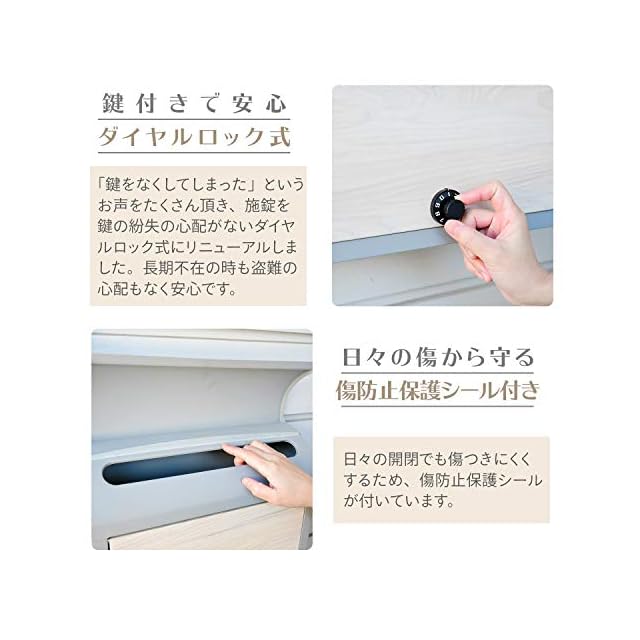 【商品特徴】支柱を取り付けるだけの簡単組立です。屋外設置が可能な防雨設計(防水規格 IPX4取得)※完全防水ではありません。A4サイズ対応※最大 25×38×3cmまで投函可能。アンカー不要でブロックやレンガなどの重石を設置できます。結露から郵便物を守るための穴付き底板仕様です。投稿口(ふた付き)が上部にあり、郵便物を曲げずに投函可能です。郵便物が取り出しやすい前面オープンタイプです。ダイヤル錠で簡単操作で施錠可能※解錠番号は変更できません。