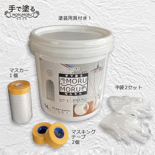 EC限定でMORUMORUカラーバージョン新発売! 容量14kg。 塗り面積(1回塗り)約14平方メートル(タタミ約8.5枚分)。 乾燥時間夏(30度)約3時間冬(10度)約6時間。 うすめる液水(目安5%以内)
