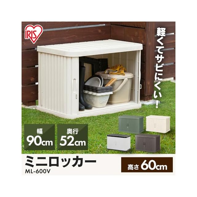 アイリスオーヤマ 物置 左右スライド式【扉が邪魔にならない】ミニロッカー 幅90×奥52×高60cm ブラウン ML-600V