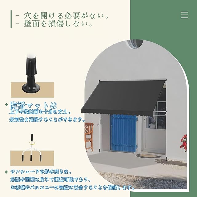 【多目的】:この高品質のベランダ オーニング、優れた多機能性を備えています。バルコニー、テラス、屋上テラス、庭、さらにはオフィスの窓など、さまざまな場所で使用でき、リラックスできる場所を作り、空間の美しさを向上させることができます。色の変化が多数あるため、自分の好きな色を選ぶことができ、日よけは家の視覚的なポイントにもなります。