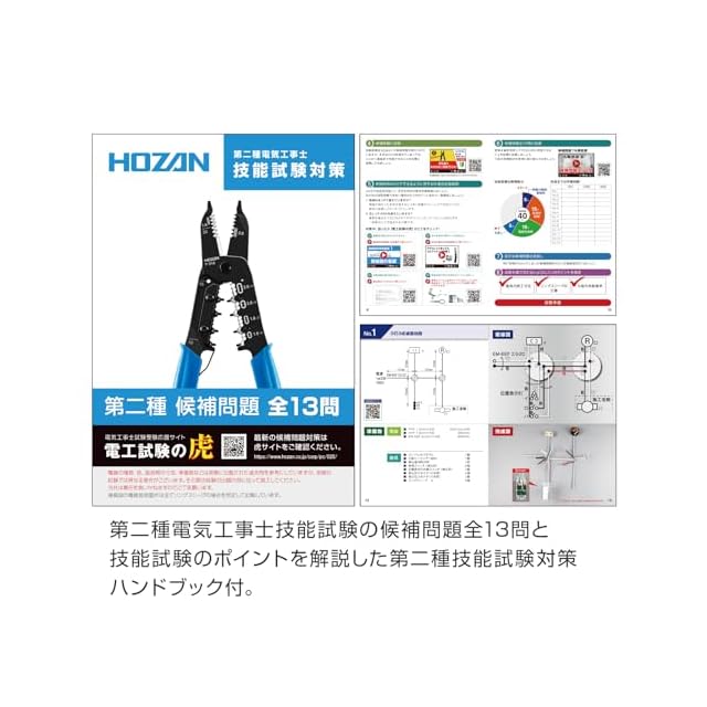 【技能試験対策ハンドブック】候補問題全13問の複線図、完成図、各器具の名称と電線の種類などをフルカラーで掲載。A5サイズで持ち運びに適しています。