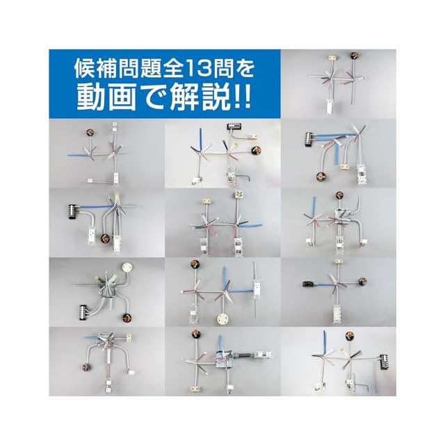 令和7年度(2025年)第二種電気工事士技能試験の候補問題全13問を、それぞれ2回ずつ練習できる電線と器具がセットになっています。
