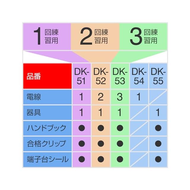 令和7年度(2025年)第二種電気工事士技能試験の候補問題全13問を、それぞれ3回ずつ練習できる電線と器具がセットになっています。