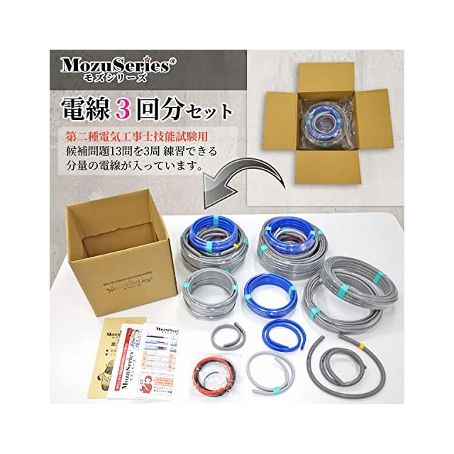 🟧【こだわりポイント】 1,当商品は第二種 電気工事士 技能試験 の候補問題 全13問の 練習 に必要な 電線 各種がすべて入っております。 特に便利なのがVVF電線の1.6-2Cと3Cが2本ずつに分かれており、商品の出し入れなどが簡単にできます。 2,梱包品も充実しており、試験日までの繰り返し練習時に便利。