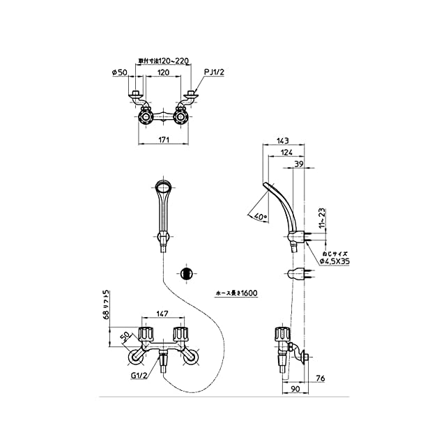SANEI(サンエイ) ツーバルブシャワー混合栓 シャワー吐水のみ ホース長さ1.6M 一般地・寒冷地共用形 SK110-W-13 シルバー